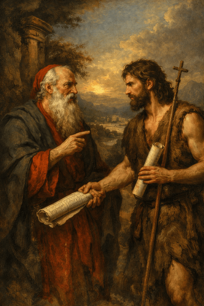 The conversation is imagined, but the continuity is real. John does not introduce a new agenda; he reopens an unfinished one. Malachi promised a messenger “in the spirit of Elijah.” John arrives wearing that spirit plainly—unpolished, unafraid, uninterested in approval. He is not the destination; he is the threshold. His success will be measured by his disappearance.